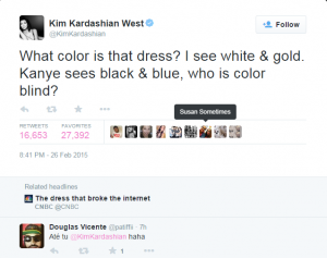الفستان، حيث يراه «كاني» أسود في أزرق.