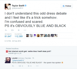 «تويتر»: «أنا لا أفهم لماذا كل ذلك النقاش على لون الفستان؟، بالطبع لونه
