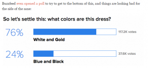 وقام موقع Buzzfeed بعمل استطلاع للجمهور حول رأيهم في الفستان الذي